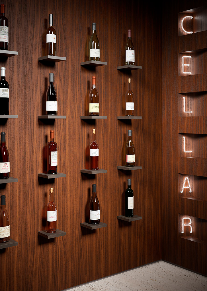 Textuur Poro Noce van Cleaf is geïnspireerd op walnoot hout. Decor LS47 heeft een levendige, verticale nerf welke de natuurlijke beleving geeft van kwartiers gezaagd hout. De gemêleerde bruine kleurschakering past bij de actuele mid-century interieurstijl.